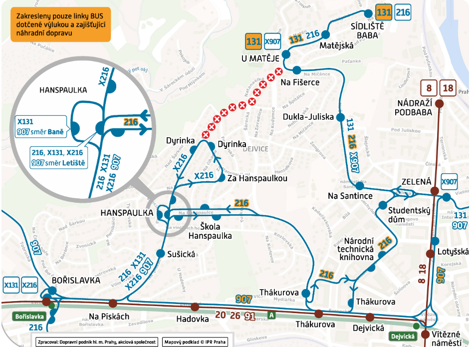 Od zítra, tedy 16.2.2026 nás čeká další výluka autobusů 131 a 216. 131 pojede ve směru od Hradčanské pouze na Babu, ve směru od Bořislavky pouze na Hanspaulku.
